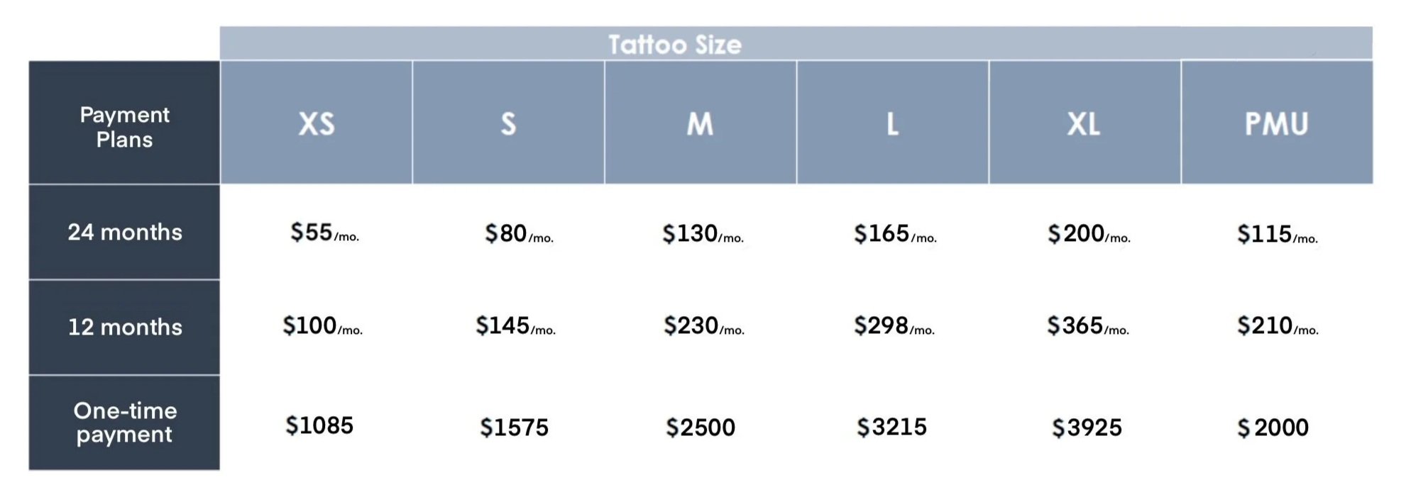 Tattoo removal for tattoos larger than 6” inches in length and width.